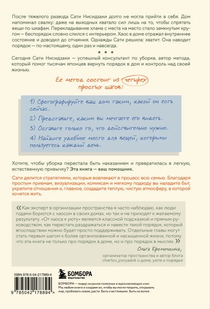 Когда в свет вышла первая книга Мари Кондо «Магическая уборка», никто не мог себе представить, какой успех ее ждет. 30-летняя японка с такой страстью пропагандировала избавление от хлама в доме и в жизни, что вдохновила этим сначала своих соотечественниц, а затем, благодаря видео, выложенным в Интернет, и женщин по всему миру. Книгу перевели на 35 языков и очень скоро она заняла 1 место в рейтинге Amazon.com, где продержалась более полугода, а сейчас, 2 года спустя, «Магическая уборка» по-прежнему в ТОП-50 самых популярных книг. В России за полгода было продано более 100 000 бумажных и электронных копий. Сейчас Мари Кондо представляет свою 2-ю книгу, «Искры радости», иллюстрированный практикум по методу КонМари, в котором вы найдете: · пошаговую инструкцию в картинках, как складывать одежду, чтобы она занимала минимум места и при этом сохраняла форму; · иллюстрированные правила организации вещей в шкафах и комодах; · руководство по хранению самых разных категорий, от бытовой химии до фотографий и документов; · ответы на самые распространенные вопросы от тех, кому все еще тяжело выбрасывать хлам; · уроки простой и полной радости жизни в окружении любимых людей и вещей.