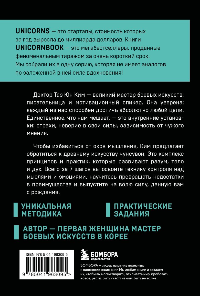 Закончил читать эту книгу и хочу признать, что она для меня сразу вошла в ТОП литературы по саморазвитию. Пока что эмоции не улеглись, но, возможно, присужу ей первое место вообще из всего, что я читал в этой сфере.Автор в произведении излагает свою собственную систему обретения внутренней силы, основанную на базе восточных единоборств. Последовательно и очень понятно изложена суть. Не нашёл здесь воды и переливания из пустого в порожнее. По-корейски чётко и лаконично. Самое важное, что именно у меня отозвалось то, о чём говорит Автор. Здесь нет как таковой эзотерики (эзотерику я совсем не приветствую), здесь речь о работе над разумом и телом с целью достижения их единства и обретения глубокого понимания себя и своих целей.Однозначно буду рекомендовать прочтение книги своим близким друзьям. Оно того стоит.