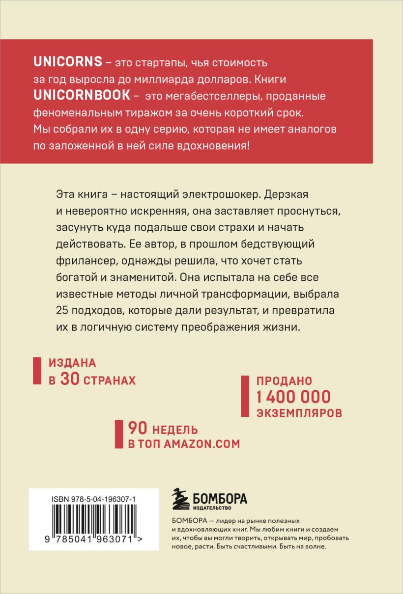 В общем я не знаю, кого она и на что замотивировала, но лично у меня кроме смешанного чувства брезгливости и сарказма ни чего иного не вызвала.Все стандартные призывы "Люби себя", "Цени свое время", "Верь в свои силы" перемешаны с тем, что автор периодически указывает на то, какая она молодец, а ты, если читаешь эту книгу и что-то хочешь поменять, то ты явный неудачник. Тебе срочно нужно менять свою жизнь и без ее советов у тебя ни чего не получиться, ведь ты, повторюсь, неудачник. Но она великая Коуч сможет помочь изменить тебе свою жизнь: ты не должен обращать внимание на деньги, ты не должен оставаться в зоне комфорта, ты должен действовать. Но знай, что все в начале может пойти прахом, потому что тебе мешает твое подсознание с проблемами и установками из прошлого. Это очень сложно сломать и отрешиться от части себя, но если ты этого не сделаешь, то так ни чего и не получишь. Ставь себе дедлайны, делай ставки, терпи неудачи, но продолжай двигаться ибо без движения цель не достигнуть (ну хоть в чем-то она права).Плюс в этой книге намешан такой микс из различных мотиваций, начиная от вышеописанных "верь в себя и ломай себя для достижения своих целей" до "посылай желания во Вселенную и она обязательно тебя услышит". Да и вообще периодически не понятно, что именно автор имела ввиду, все таки Вселенские потоки или Религию, так как отсылки к последней также присутствуют в книге.В книге также полно историй автора из ее жизни. И как-то даже истории поданы так, что не веришь ни в ни, ни в практики по их достижению, да и вообще не веришь. Сплошное кривляние да показуха. Но это не мотивация, и не пример для подражания, это.. я даже не знаю что это.Я как-то ожидала от этой книги гораздо большего, а оказалось, что это сплошное разочарована. Единственно, что в ней ценно это название, а содержание это слепленное на скорую руку, за час до дедлайна сборная солянка ни разу не мотивирующая, ни разу не цепляющая и ни разу не вызвавшая мысль " Я тоже хочу".
