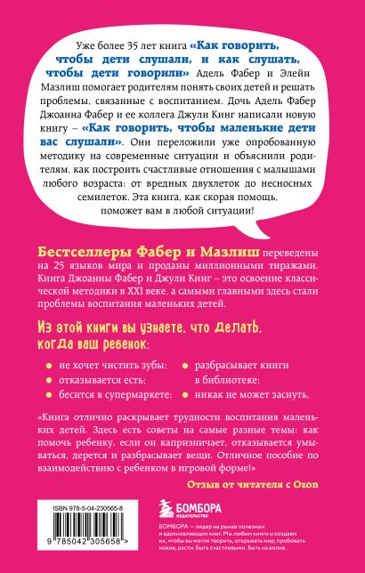 Из кучи всяческого рода "воспитательных" книг, эта - первая, которая лично мне понравилась, впечатлила, вызвала желание держать под рукой. В этой книге множество практических советов, преподнесенных удобно и компактно , а не какое-то размазанное заносчивое и зачастую совершенно неприменимое "блаблабла у меня много опыта и только я знаю как- блаблабла". У меня создалось впечатление, что НАКОНЕЦ-ТО меня не поучают, а по-дружески советуют попробовать какие-то, возможно, именно мне (!) подходящие варианты! Мне хочется перечитывать, мне хочется слушать авторов. Мне хочется читать их еще. От души рекомендую