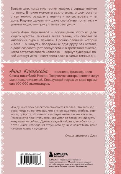 Красота в глазах смотрящего, и мир вокруг таков, каковым люди сами хотят его видеть. В нем есть проблемы, обиды, суета и невзгоды, а есть радость, любовь и добро. Чем наполнить свою жизнь, решаем только мы, и рассказы Анны Кирьяновой в очередной раз убеждают нас в этом. Любовь и добро возвращаются бумерангом, главное — научиться делиться ими с другими.