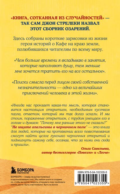 Новая книга из серии «Кафе на краю земли» понравится всем ценителям философии Джона Стрелеки. Это третья часть книг с мудрыми озарениями автора, которые могут стать вашей ежедневной поддержкой. В отличие от первых двух книг, «Не ищите апельсины в черничном поле» и «Что хорошего в красивом пейзаже, если вы не смотрите в окно», в этой вы найдете истории, похожие на притчи.